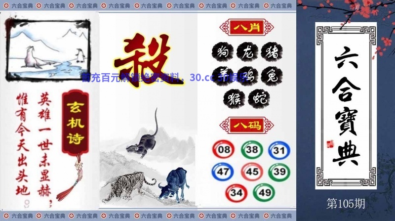 105期:【五尾中特】【34578尾】开:狗44准 |